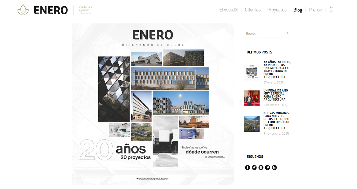 El blog de ENERO Arquitectura es uno de los principales espacios desde los que articulamos nuestro discurso. Lo concebimos como un lugar de reflexión y de conversación, no como un simple escaparate de proyectos terminados. En él compartimos inquietudes, referencias y aprendizajes, entendiendo la comunicación como un intercambio continuo con nuestros interlocutores.