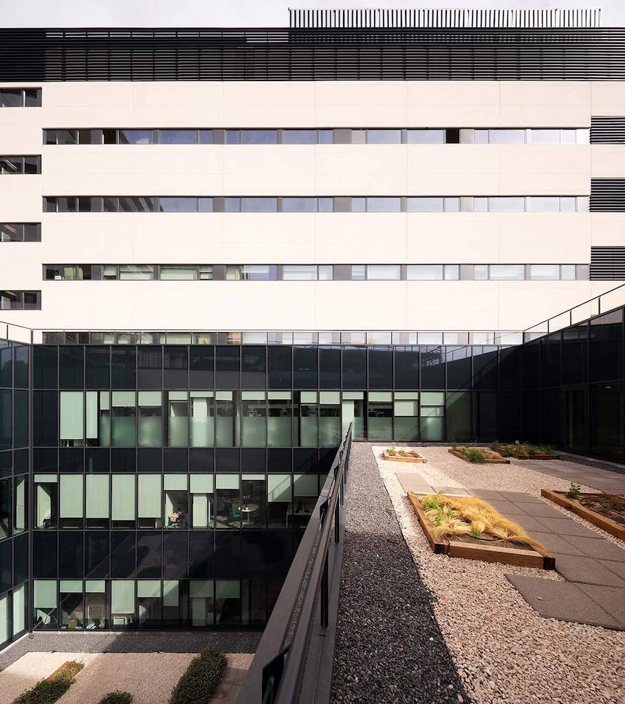Fotografía exterior del Hospital Quirónsalud Badalona. ENERO Arquitectura. Fotografía Jorge Allende.